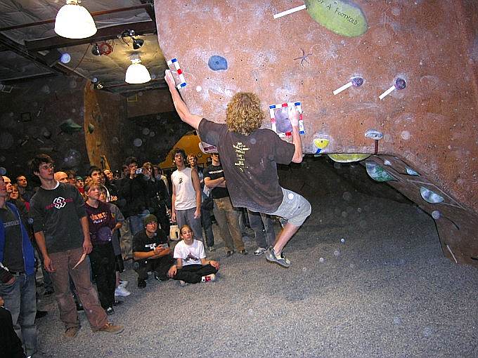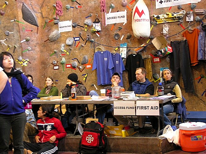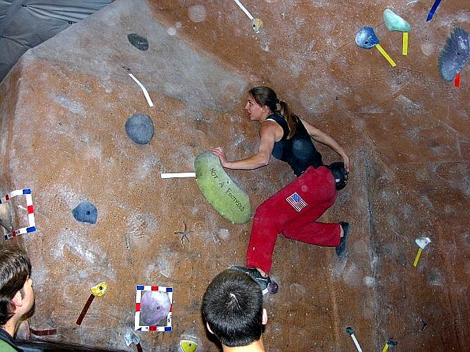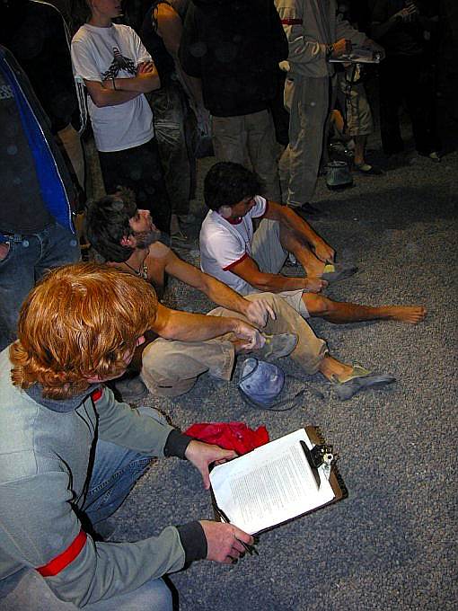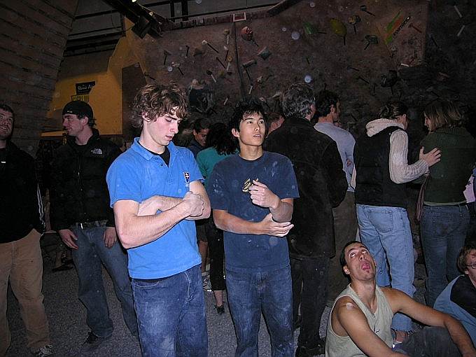 Благодаря тому, что я отлазала с утра, смогла посмотреть и пофоткать всех монстров :-) . Ребята распечатали все трассы кроме самой дорогой, что стоила 1000 очков, соответственно максимальный результат был 980, у девушек 675. Мне понравился народ из Канадской сборной – очень сильные ребята. Они же представляли команду Metolius. Что касается командного зачета, то его не было, хотя, судя по футболкам, было много людей из команд, например: Vertical World Team, Stone Gardens Team, Metolius Team, La Sportiva и т. д.