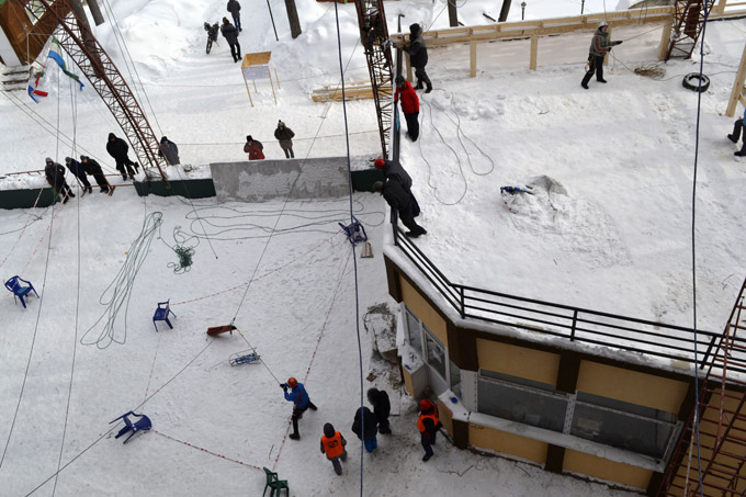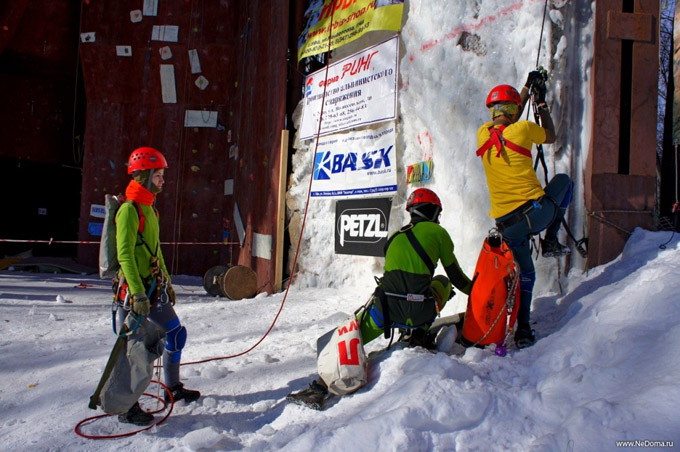 В этом году на скалодроме Кул-Тау прямо перед Зимней вишней был проведен этап Кубка России по ледолазанию, и постановщики спелеодистанций 4 класса решили использовать лед - мало ли с какими трудностями мы можем встретиться в пещерах, у нас и обледеневшие ходы есть.