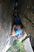 там лез враспор по большому внутреннему углу. Маршрут был примерно 20-й категории. И он не носил трусов :-). (Наверное имеется