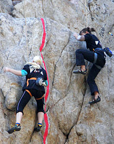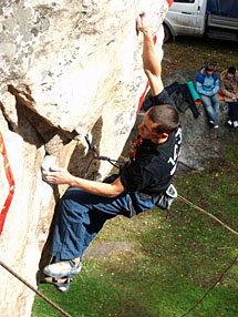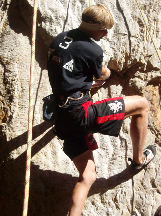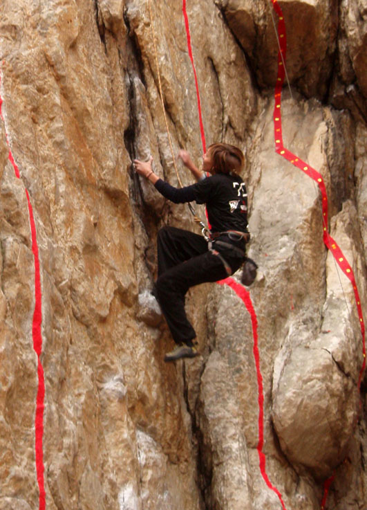 В этом году участников и болельщиков ждали некоторые новшества. Во-первых, электронная система старта-финиша в скорости (ее же применяли и в трудности с боулдерингом - очень удобно). Наконец-то ушли в прошлое секундомеры с ужасными погрешностями, наконец-то время больше не засекали судьи своими дрожащими руками. Во-вторых, две соревновательные дисциплины решили скомбинировать: квалификация была на трудность (две трассы без отдыха), а в финале восьмерки сильнейших мучались на пяти боулдеринговых трассах (ну, кто-то, конечно, и не мучался вовсе J ). В-третьих, вечером в субботу Васи не было, зато девушек было три! (те, кто уже был в Урал-тау, меня поняли).