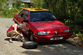 В конце концов, заменив колесо и расплатившись с водителем такси, оставшуюся часть пути было решено проделать пешком.