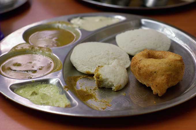 С гидом договорились на 10.00 утра, по его словам к этому моменту город разгружается от пробок. Сами проснулись 8.30 и пошли искать, где можно позавтракать. Невдалеке виднелся Макдональд'с, но как нетрудно догадаться, мы туда не пошли, хотя мой организм настойчиво требовал Кока-Колы, а вернее кофеина в большой дозе. Сразу через дорогу от нашей гостиницы начинался квартал с индийскими закусочными, в одну из них мы и зарулили.