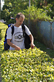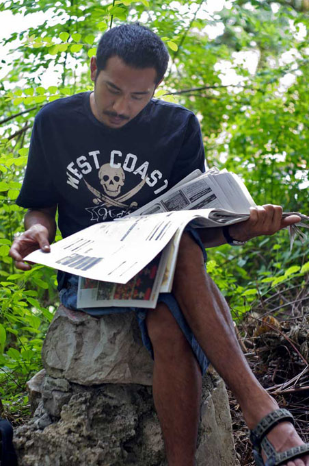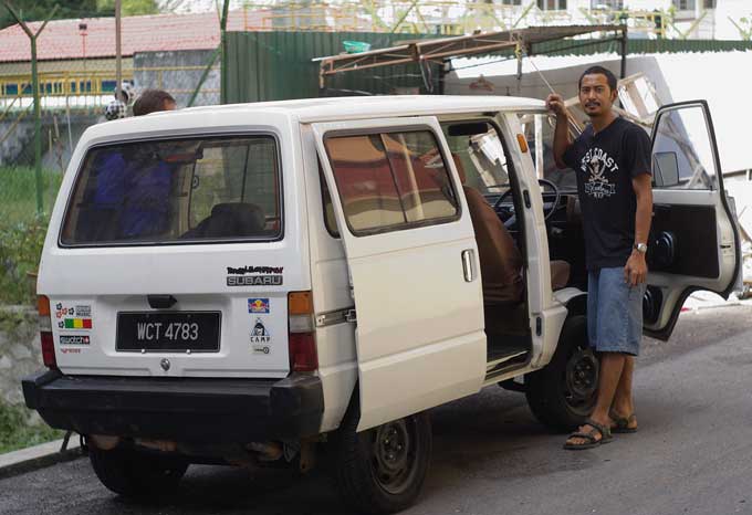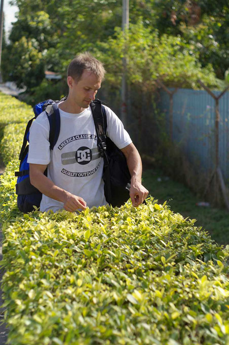 После того, как мы (НАКОНЕЦ-ТО) очень вкусно и сытно пообедали, первостепенным для нас стал вопрос о ночлеге. У тети Лизы удалось выяснить, что ни у нее, ни тем более на цементном заводе нам переночевать не удастся, что гостиницы есть в Kangar и в Arau и что куда-то туда вот-вот должен проехать автобус. Автобус и впрямь пришел минут через пять, после того как мы вышли из кафе и расположились на обочине. Вот только ехал автобус в Kangar, а нам туда ну никак не надо было, далеко. Поэтому, довезя нас до цементного завода, трубы которого мы полдня наблюдали при спуске с трасс, автобус поехал в другую сторону. И здесь к великому счастью мы узнали, о том что в окрестностях Bukit Keteri есть не только цементный завод и карьер, но и самое главное фабрика по производству органических удобрений. Удушливую вонь, распространяющуюся по округе от фабрики словами не передать. Я думал, сдохну. Пока Олег ловил такси, я в судорогах дергался на автобусной остановке. Проезжающие мимо машины останавливаться категорически не хотели, такси тоже видно не было. Примерно минут через двадцать мои страдания были вознаграждены. На другой стороне дороги, где Олег на ласковом южном солнышке ловил машину, я увидел остановившуюся малюсенькую машину, в которой сидели, !внимание!, четыре ангелоподобных создания в мусульманских хиджабах и платках. Ну, думаю, двух мужиков с рюкзаками они, даже если захотят, не разместят, в такую машинку даже непонятно, как они сами-то залезть вчетвером умудрились. Но не тут-то было: разместив наши рюкзаки в багажнике, дамы втроем уселись на заднем сиденье, куда, не растерявшись, тут же прыгнул Олег, мне досталось переднее сиденье. Каким наслажденьем было вдыхать очищенный кондиционером воздух. Правда, я тут же вспомнил, что провел в поезде всю ночь, потом пол дня лазил, поэтому старался сидеть, не шевелясь, вызывая тем самым улыбки у наших спутниц. Проезжая мимо дворца султана, Олег произвел неопределенный жест рукой в сторону ворот. Шариатским судом жест был расценен как оскорбительный, и Олега до вечера отправили на плантации собирать чай.