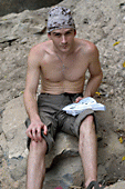 Три предшествующих дня выявили мою полную несостоятельность как скалолаза. В связи с этим я решил оставить в покое 7b и полазить чего попроще, для начала было решено размяться на The Lion King (6c+), и - о чудо - наработанная до автоматизма, ещё в прошлом году трасса решительно не хотела покоряться, никак не давался последний перехват на ручкан. Дальше под язвительные комментарии Люды я смешно подергался между первой и второй оттяжками на Mai Mee Fahn (No Teeth) (7a+), тоже пройденную в прошлом году по насосу. И в тот момент когда я уже было совсем решил, что скалолазание это совершенно дурацкое занятие, а мне надо заняться чем-то более спокойным, например хохломской росписью, подошел Олег и мудро заметив, что нам пора ехать, спас меня от дальнейших мучений.