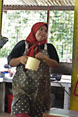 Решив, что лучший способ познакомиться с местной кухней - это пообедать там, где едят местные жители, мы уютно расположились за одним из столиков, вызывая живой интерес многочисленных детишек и вообще всех присутствующих. Тетя Лиза оказалась ужасно колоритной дамой лет сорока - сорока пяти, но моим вниманием целиком завладела вовсе не она, а ее старшая дочь в платке и хиджабе. Заметив это, Олег резонно заметил, что страна мусульманская и здесь за такие веши могут и женить, а то и попросту забить камнями. Образумившись после такого замечания, я вооружился фотоаппаратом и под неодобрительные замечания разумно мыслящего Олега начал фото охоту за таинственной красавицей.