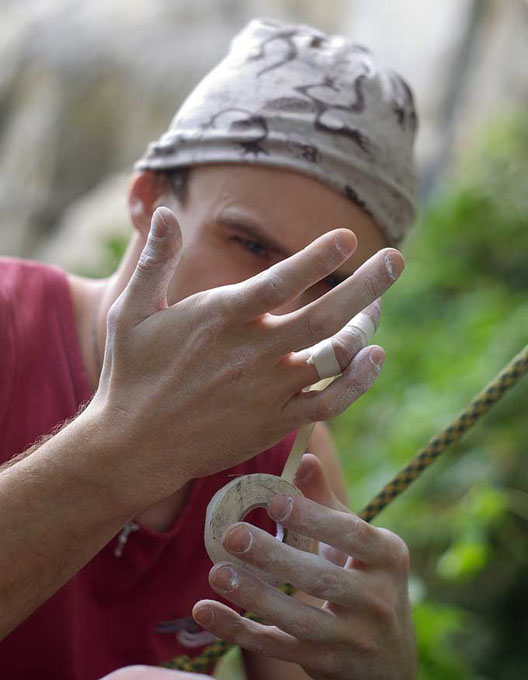 Изучаю Гайд, заматываю пальцы, надеваю тапки, думаю…. 6с то я точно пролезть доложен, несмотря на самую плохую форму за пол года, делаю подход…. с тем же успехом, что и у Олега, странно. То, что с низу выглядело как ручки, на деле оказалось пассивами и соплями, вдобавок к этому до третьей оттяжки работа идет через отстойный щипок, через мизерный дохват на пассивную откидку, ноги в трение и динамический перехват на клееную зацепку, с нее берем ручкан и вщёлкиваемся