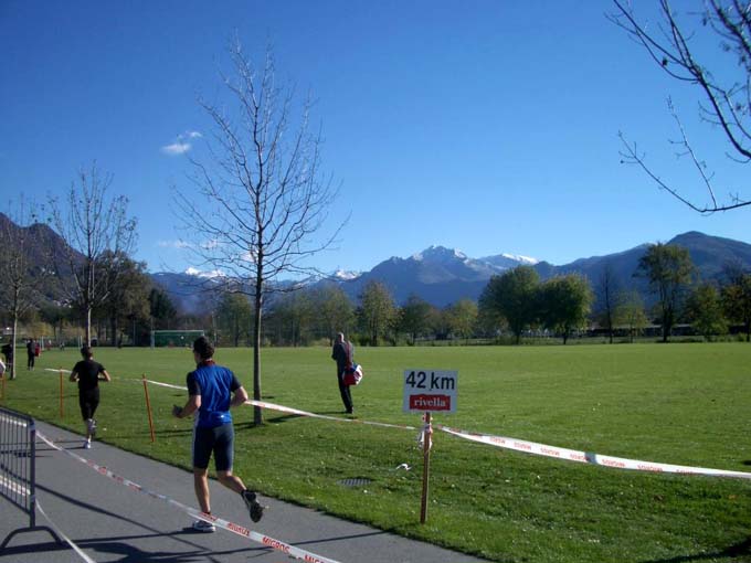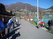 Кстати, о дистанции: она представляла собой восьмёрку 21 км - первая петля пролегала по сельским районам, где можно было вдоволь насмотреться на местный «кантрисайд», а вторая проходила по берегу озера (Лаго Мажоре) и далее через центр Локарно. Соотвественно старт и финиш были в узле восьмёрки, полумарафон - одна восьмёрка, марафон - две.