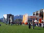 На полпути сделали «привал» на автозаправке, перекусили, взбодрились свежим воздухом (высота была уже больше 1000м и температура порядка -10°С). Потом был знаменитый Готтардский туннель, длинной 20км. Сейчас уже роют новый, длиной 50км, но только для поездов. Тем временем начинало светать, и, когда мы подъезжали к Локарно, солнце уже встало. Приехали мы рано, прошли регистрацию, получив номер, футболку и паёк, и пошли осматривать окрестности.
