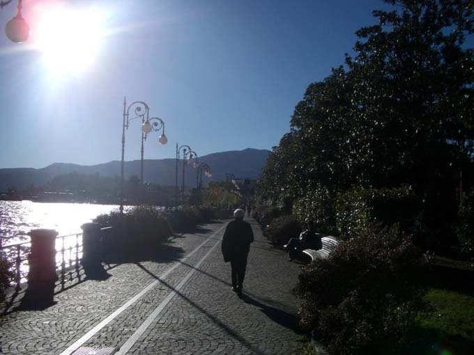 Решив, что центр Локарно мы уже видели, и смотреть там больше особо нечего, мы приняли стратегическое решение совершить поездку в Италию. Сказано-сделано: и вот мы уже едем по берегу Лаго Мажоре к Итальянской границе. Пограничник демонстративно поворачивается к нам спиной: «Чего вас проверять - проезжайте». Первый более - менее значительный городок на побережье - Вербания.