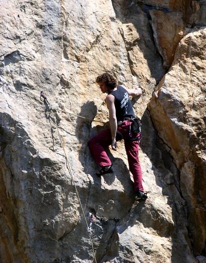 на скалах. Среди его достижений, например, маршруты 8b+ onsight, red point