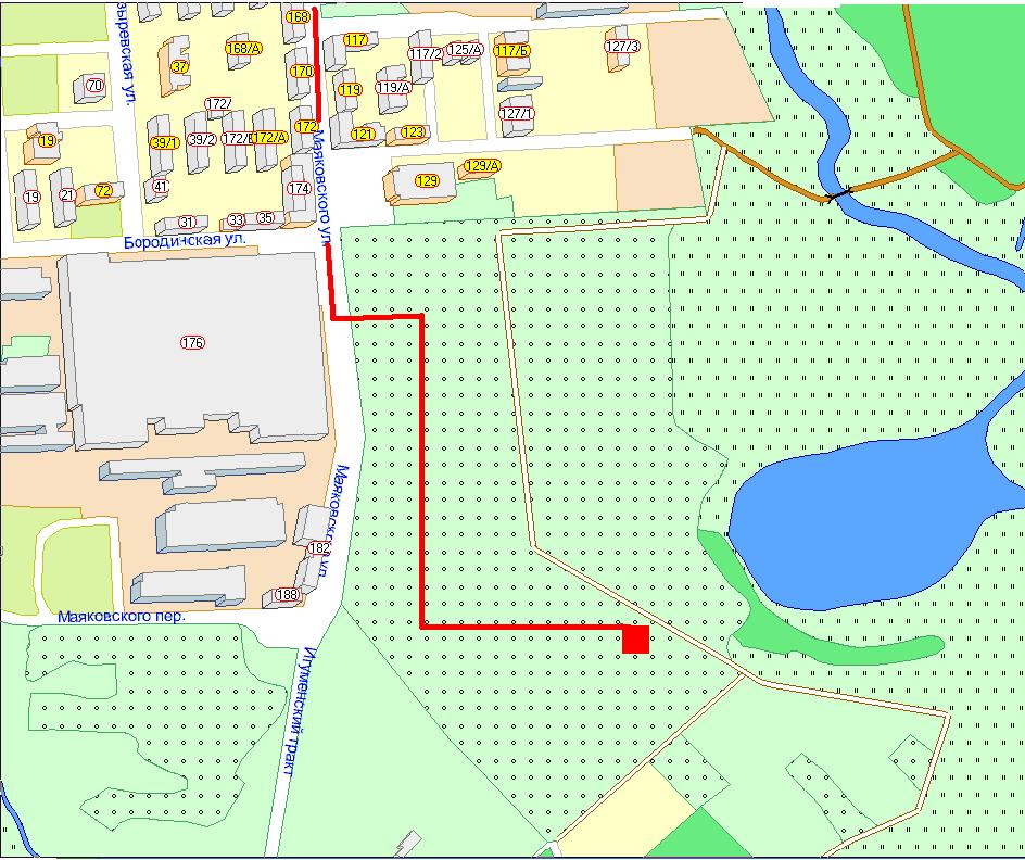 Парк Лошица – развалины красной мельницы. От Вокзала (ул. Кирова, ул. Ленинградская) автобусы: 3, 3а, 52, 52д, 85, 102, 123; троллейбусы: 5; маршрутное такси: 1006, 1056, 1152. До остановки "Камвольный комбинат", перейти дорогу и вниз по парку.