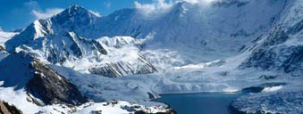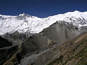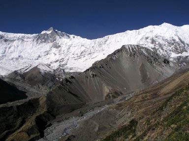 На первой фотографии Аннапурна 1, собственно, вокруг которой мы ходили. Видна была только один раз из деревни Кото Купар рано утром, 8 с чем-то тысяч. красавица. На второй - Great Ice Barrier - Большой Ледяной Барьер, окружающий Аннапурну с