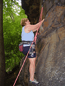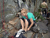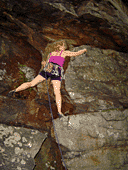 Вылез все 5.10 на Оранжевом Освальде. Сделал свою первую 5.10d (6b+) онсайтом с провешиванием в Баба-сити. Лазал 5.11а и 5.11b (6с), но ни одну чисто не вылез. 5.11а (6с) была 'G-string' в Bubba City. Вот ее девочка-азиаточка лезет: