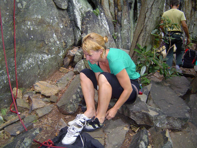 Вечером у костра с пивом у Эмили, жены владельца Кливлендского скалодрома, развязался язык. Она рассказала историю ее любви с Ли, ее нынешним мужем. Она приходила к нему на скалодром, лезла какой-то траверс. Ей навстречу лез некий мужик по имени Лекка (финн что-ли?). И вот они встретились и он заявил, что она должна его поцеловать. Она сказала 'No.' Он начал к ней приставать. Она ушла со скалодрома, села в машину, уехала куда-то, остановилась и расплакалась.