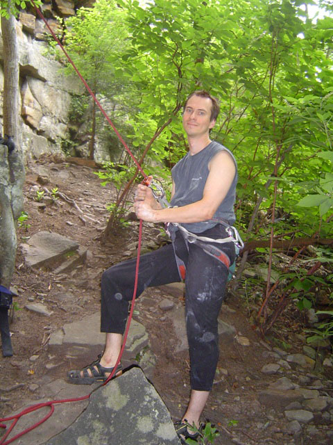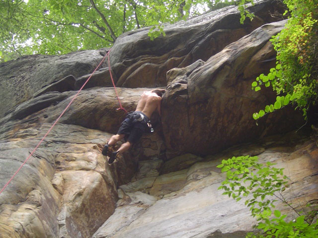 The New River Gorge. За лето съездили туда четыре раза. Под конец я уже немного устал. Туда 6 часов вести машину, и обратно столько же. Зато там самое кошерное скалолазание. И набирается самая приятная компания, чтоб поболтать за ужином.