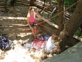 Потом начался дождь и меня послали долезать и чистить так и незаконченную Джеем 'Кинестетику' (5.10с, 6b). В прошлый раз я летал с ее крыши. На сей раз крышу сделал легко и чисто.