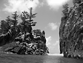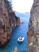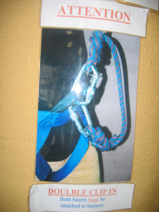 На все это я смотрел сначала очень скептически, но потом все же осознал, что сохраненные нервы инструктора и здоровье посетителей того стоят. Страховка обеспечивается на 200%! И никаких случайностей! Как это иногда происходит у нас. Даже если страхующий отпустит во время спуска руки, скорость движения веревки будет все равно очень незначительная. Даже при большом весе партнера. А при малом весе она просто остановится. Спуск происходит, только если страхующий выдает веревку через спусковое устройство. Причем это не судорожное проталкивание веревки, требующее затраты усилий и нервов, а просто перебирание ее руками. Блоки, через которые проходит веревка, диаметром примерно 15 см. С надежными «ушами» и осью. Крепятся в основном на двух шлямбурах. За счет большого диаметра и хорошего теплоотвода, веревки служат намного дольше, чем при страховке через карабин. Рассказываю обо всем этом так подробно, потому что достойно подражания.