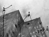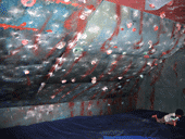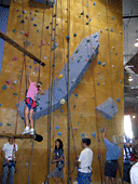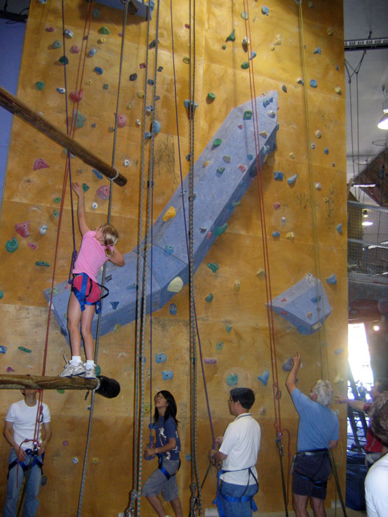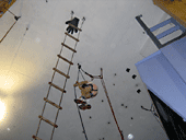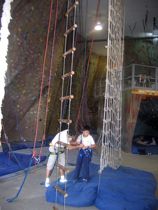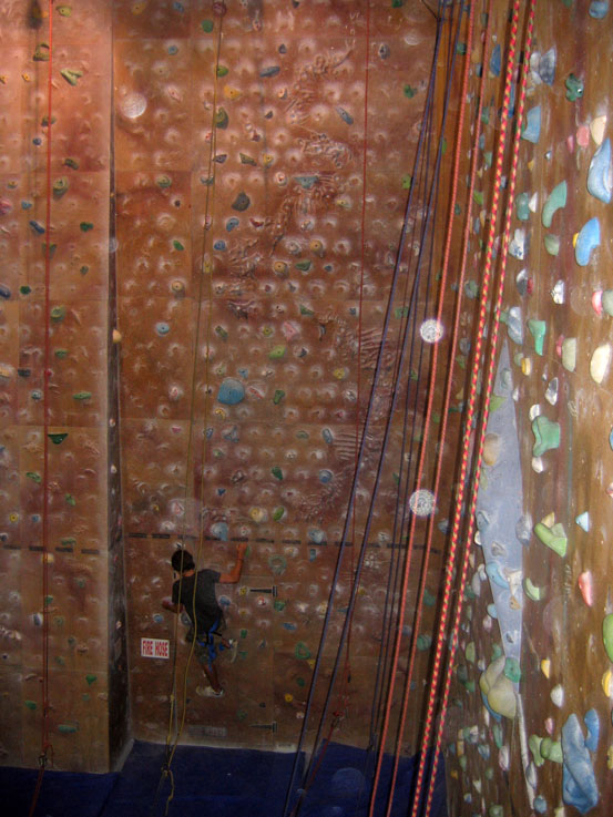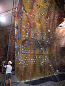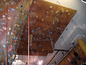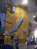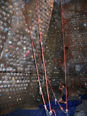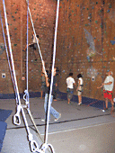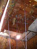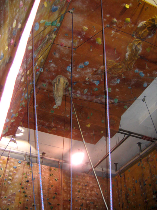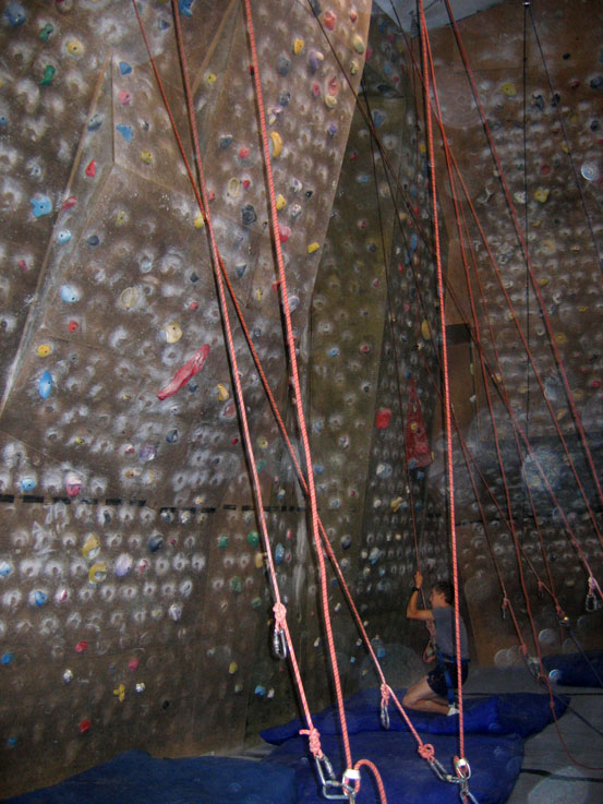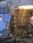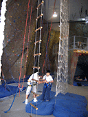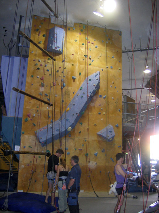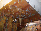 В зале, размеры которого примерно 15 х 25 м, при высоте потолков метров 12-13, кроме собственно скалодрома, есть масса всевозможных сооружений типа тех, которые висят у меня на сетке в ДДС. Всякие канаты, лесенки, сетки. И народ - дети и взрослые, с огромным удовольствием ползают по ним, получая, может быть даже большее удовольствие, чем от лазания по скалодрому.