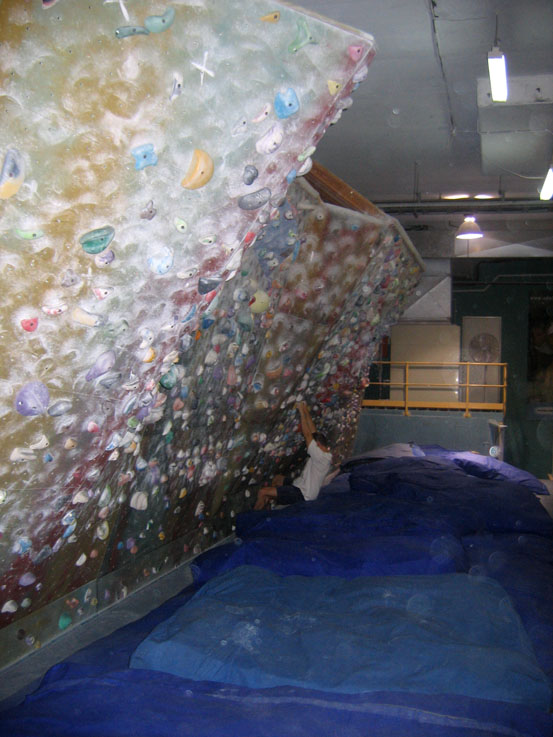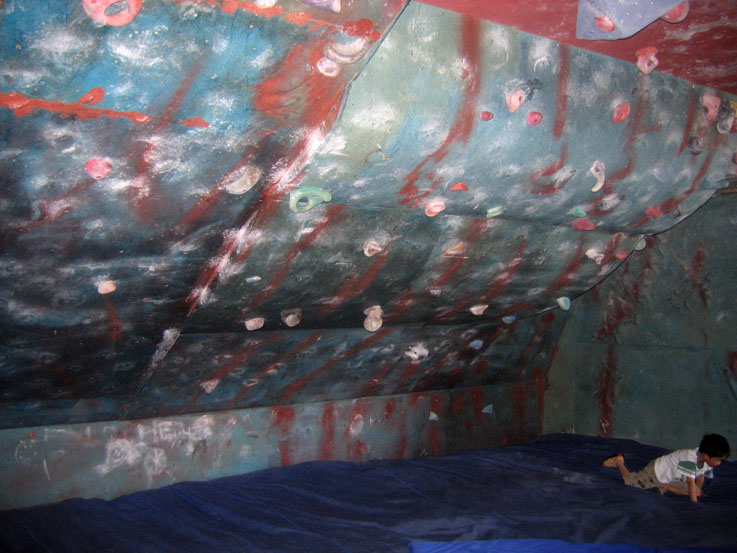 Еще у них замечательная тренировочная стена (см. фото). Тренажер для подтягивания только один, но оцените какой! И много фингербордов!