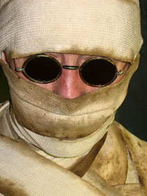 Спасло меня только одно. Перед всем этим членовредительством меня, поверх тонкого комбинезона, плотно забинтовали в эластичные бинты. В километры бинтов. С головы до ног. А на нос напялили круглые, как у кота Базилио, очки, сквозь которые я практически ничего не видел. Потому что были они темные как горы в ночном небе и с диоптриями, не совместимыми с моим здоровьем.