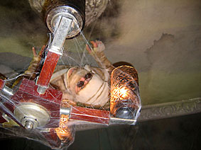 Все это безобразие какой-то киношный умник назвал - «слепой паук на потолке». Эпизод из будущего шедевра Бондарчука. Съемки проходили в павильоне «Мосфильма»