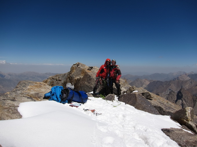 Иркутская команда под предводительством Сани Клёпикова вылезла с Северо Западной стены и уже целый час загорала на вершине.