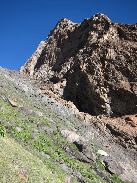 До темноты ещё много времени и поэтому пошли смотреть начало маршрута. До стены 200 метров вверх от палатки.
