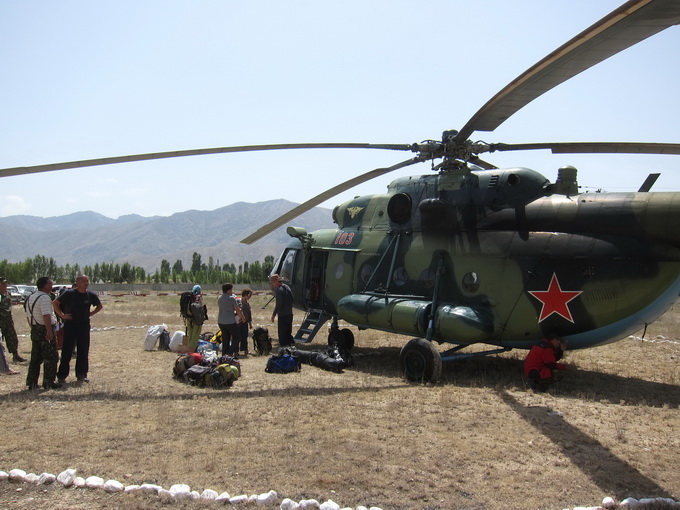Неожиданно звонит телефон и один из оргов ЧР – Александр Пятницин и предлагает лететь вертолётом, 200 американских рубликов и я, Костя плюс почти 100 кг барахла через 20 мин могут оказаться уже в районе базового лагеря в ущелье Кара-Су.