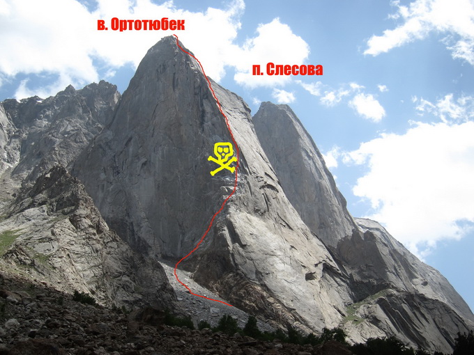 Выбрали маршрут 5Б Лебедева на Ортотюбек. Мне хотелось сходить какой нибудь маршрут в соседнем ущелье Ак-Су. Маршрут Лебедева был самым популярным на Ортотюбек. Смущало только то, что на горе был сильный обвал 2 года назад и вроде как маршрут изменился. Но вроде народ ходил, да и время прошло, должно всё обсыпаться лишнее и обмыться.
