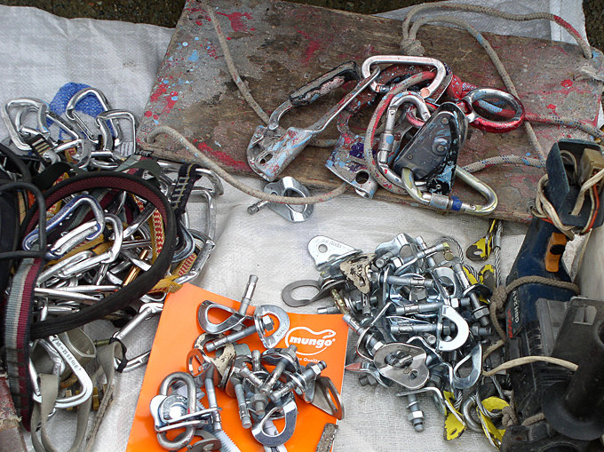 Наверху верёвочная петля с рапидом. Можно вешать верхнюю страховку! На маршруте есть пара больших камней, они рядом с пунктом, шатаются, но выдавить и столкнуть их ногами не получилось, держатся.