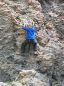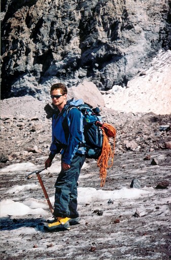 Это было уже веселее. Мы на Эльбрус типа пошли. Оставив слабых членов нашей группы сторожить базовый лагерь, сами выдвинулись в первый высотный. Поужинав соевым сублимясом (по внешнему виду как спаржа, по вкусу – ластик) и, обсудив возможность ловли горных козлов на лыжные палки с надетыми на них грязными носками, легли спать. Встали ещё до рассвета, собрались, оделись, долго выяснали, чем булинь от восмерки отличается.... но в итоге напялили обвязки и потопали. Иду я значит, кошку всей ступнёй в лед вгоняю, лидирую уверенно, крутой, почти как Стеценко. Вижу – полоска льда, ну я на ней ступеньку рубанул и дальше топаю, а склон все круче, смотрю я вниз – а там уже у моей ступеньки толпа собралась – и все решают как бы это в неё половчее наступить. Ну я встал, жду что начальник скажет.... и чем дольше стою, тем склон круче становится, решил ледобур завинтить (тока никому не говорите, что я тогда это в первый раз делал) – а то как начнет нависать.... как отбросит. Встал на самострах, а тут как раз начальник подошёл. Заценил как нависает, как отбрасывает, говорит давай перилу вешай. Горизантальную. А у нас любая перила - горизантальная – так как жумара все равно нет. Ну я повесил. А он говорит: иди дальше вешай. А я пока вешал склон совсем крутой стал, такой – что только на мысках стоять можно. Ну я пошел вперед, ледобуры на расстоянии самостраховки кручу, безопасность обеспечиваю. А тем временем Саша уже по периле к моему рюкзаку подошел, а Ксюша как раз в перилу встегнулась. И тут у меня буры кончились. И карабин последний уронил. Стоим мы с Сашей на самостраховке, Ксюша на периле болтается – «дальше не могу».... и тут созрело наконец решение валить. И все свалили. А я остался. Ледобуры собрал, карабин подобрал, верёвку сбросил и стою как дурак, склон-то – ого-го какой крутой.... сполз как-то.....