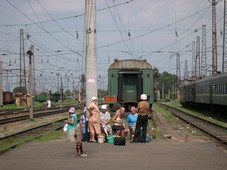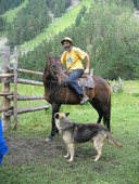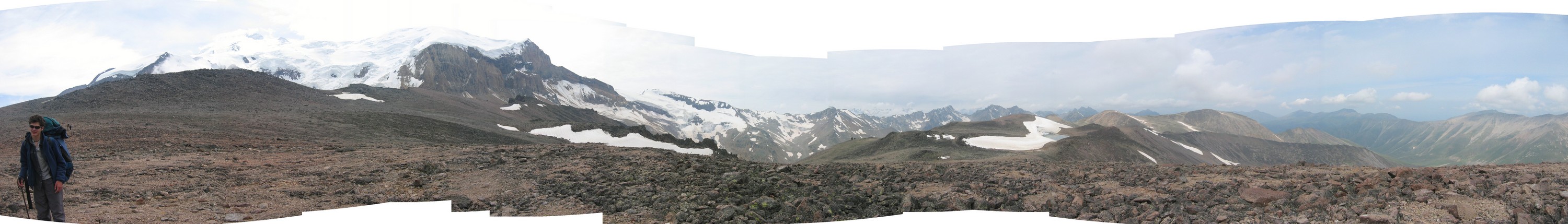 Компания постепенно разрасталась, потому шибко спортивный поход отпал и решено было идти с базовым лагерем. Поход в итоге вышел несколько безыдейным, но в целом весёлым. Началось все с того что за полтора месяца до отьезда я и наш немецкий друг Ларс вывихнули по колену, я правое, а он – левое. Но это не помеха. Было нас 13 и раскладка весила по 666 г день/чел.... А у Вити ещё и место 13-ое было. В поезде как всегда пили и в преф играли. Запомнилось как в родине самаваров, пушек и пряников – городе Туле из поезда высыпали люди с надписью на спине «Бауманка» (или что-то около того) и начали болдерить по товарнику. Впрочем ничего особо интересного на нем не было. Без приключений добрались до Хурзука, а там уже пошёл пешкодрал – первый же мост был смыт. Ну а через 2 дня мы стояли недалеко от Утюга. Что я могу про него сказать? Утюг – он и есть – утюг. На следующий день мы с Колей и братьями моими меньшими Сашей и Лешой пошли на перевал Фрунзе, 4000 с чем-то, 2а к.с. Акклиматизироваться.