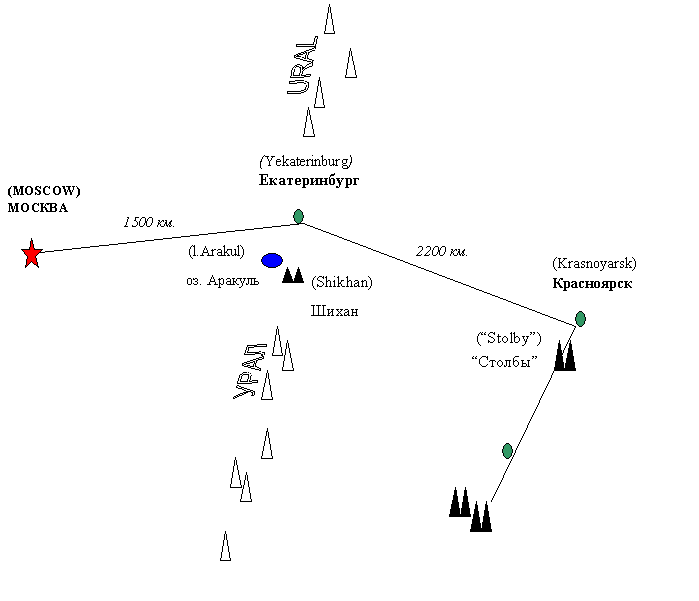Урал – горная система, а также естественная граница двух континентов – Европы и Азии. Уральские горы протянулись с юга на север почти на 2000 км. Крупнейший город Урала – Екатеринбург расположен на Среднем Урале в 1500 км к востоку от Москвы- столицы России. Между Екатеринбургом и Москвой существует регулярное авиа - и железнодорожное сообщение.