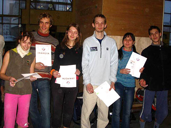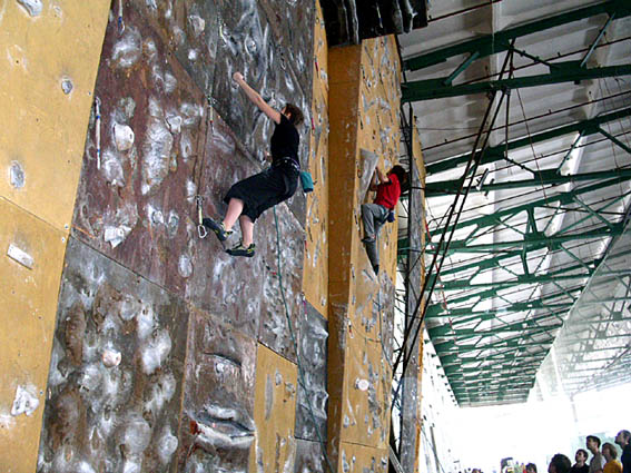 26.02.2005 Полуфинал В первом, отборочном туре соревнований приняли участие 44 юноши и 14 девушек до первого разряда. Девушки лезли 6-ую и 7-ую (две первые коричневые) стенки, юношам были предложены 10-ая и 12-ая (1-ая желтая по пирамидам и правая желтая) стенки. Финалисты будут завтра бороться с перворазрядниками и КМСами во втором туре.