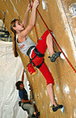 В основном, преобладали подростки-мальчики 1995 года рождения и моложе, а также младшие юноши. Видимо, в Москве мало скалолазов 1993-1994 гг рождения. Демонстрировал трассы Курсин Василий, который был раза в 2 выше самых маленьких участников. Впрочем, участники держались молодцами, и на подростковой трассе никто не упал. Трассы были хоть и простенькие, но зато на них надо было действительно бежать, чтобы добиться хорошего результата.