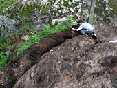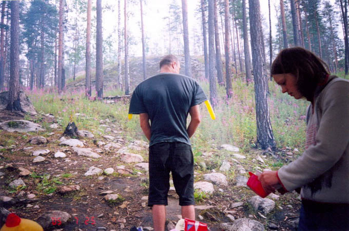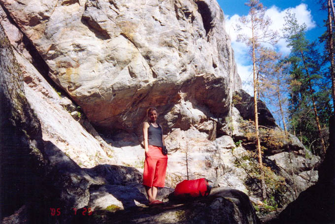 Смущало, что на камень нигде нельзя было вылезти. Весь верх камня был покрыт слоем дерна со мхом, травой, кустами, ягодами и прочей фигней, разве что зайцы там не прыгали. Кроме того, вся эта мочалка впитывает воду и долго сочится после дождя.