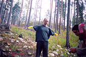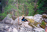 Первая – старт «Стрекозы», а выход между «Стрекозой» и «Колобком»- получилось довольно забавно, далеко не улетишь – размажет по сосне, которая прямо за спиной (а то Илюха, улетев с этого камня, пока никого не было, бежал метров 15 по склону вниз до первого дерева… совсем чуть-чуть до обрыва не добежал :) )