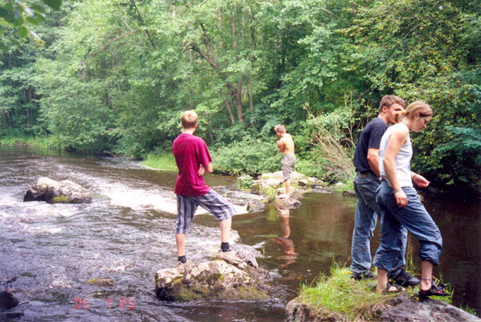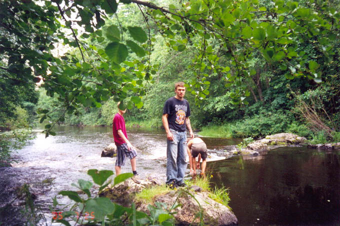 Еще гулять ходили на речку и наелись малины-черники-земляники, промокли под дождем и посмотрели на заброшенную финскую ГЭС.