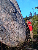 Кстати, на этих камнях рельеф отличается. Валуны лежат на открытом месте, все время на солнце и ветру, от них совсем другое ощущение, не как в лесу. Полазать на них тоже не успели :( Один, самый большой из них, был виден из нашего лагеря, но размер вблизи поразил! Более 7 метров от земли. А еще, на том берегу, в непосредственной близости от камней есть стоянка вполне приличная.