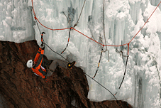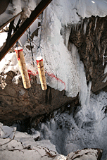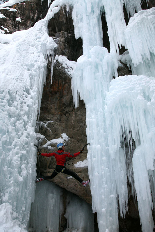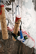 Сначала простой лед. Далее непростой переход на микст, который многих ставил в тупик... Траверс по горизонтальной щели. Лед, переход на деревянный бочки и фанера. Верх фанеры топ.