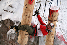 Audrey Gariepy - в дальнем бревне инструмент забит хорошо... а вот тот, за который она держится, сейчас вылетит |