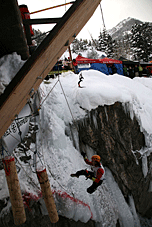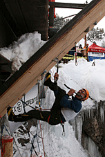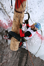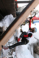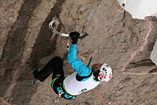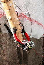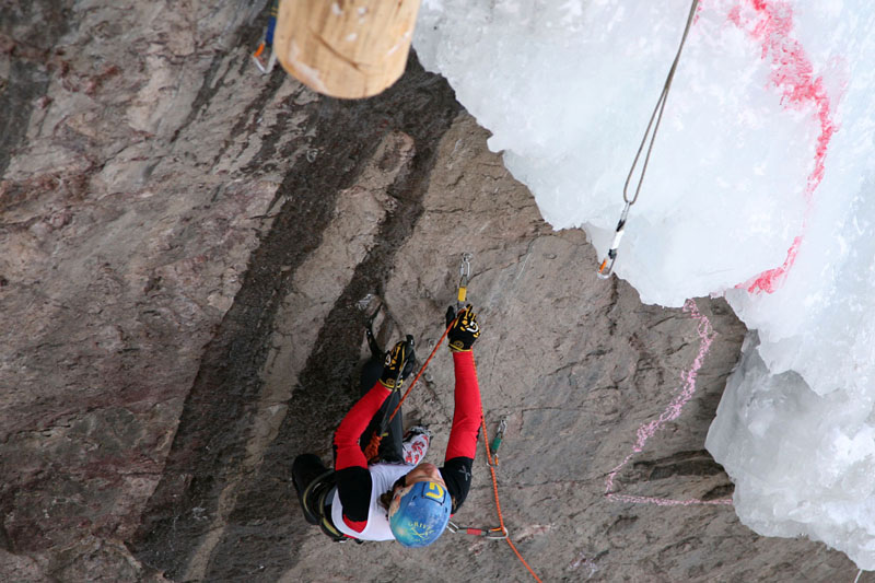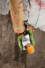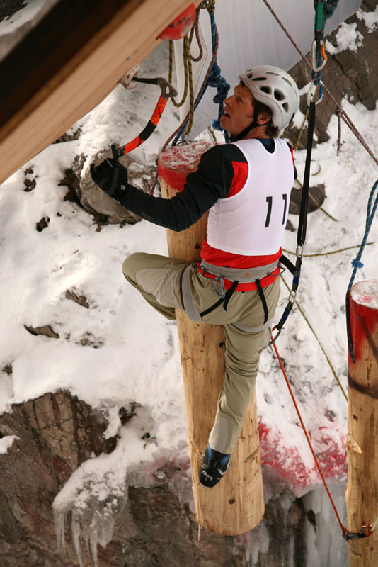 C этой верхней зацепки Женя соскользнет... удивились все... Лез быстро... упал на 8 минуте, за две зацепы до финиша. Jeff Mercier (Франция) - долез до топа... 19 минут 2 секунды. Jeff Mercier - без перчаток, каска спадала...но он рубился |