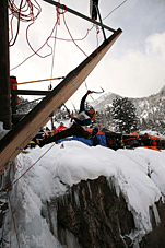 Было еще интересное место... подхват, который можно было достать если расклинить инструмент в предыдущей зацепке. Практически все брали подхват в откидку... Сложное место... многие выпали именно с этого места |