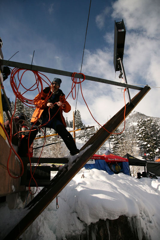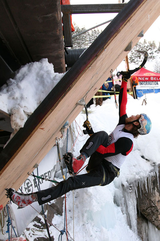 Бочки приятно разнообразили трассу. Мануель Кордова пытался расперется между льдом и болтающейся бочкой. Manuel Cordova. Руки на бочке ноги на льду.