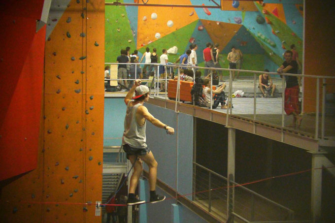 Вот идёт слеклайнер. Вот лезет скалолаз.