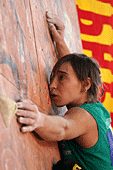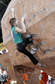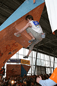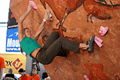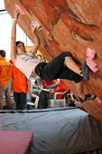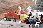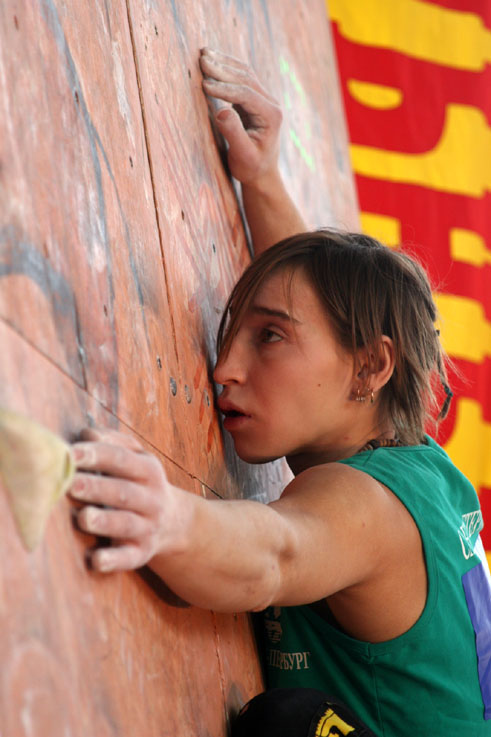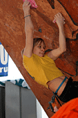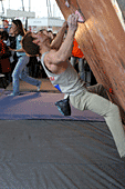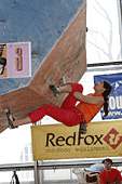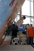 Все, собственно, ждали, что же будет в финале. Финал женщин проходил весьма вяло и без особой поддержки зрителей. Самый запоминающийся эпизод был тогда, когда Женя Маламид пыталась «ломать» скалодром после неудачи на трассе. Зато фотографов было много. Ведущий пытался «завести» публику весьма плоскими, а иногда и неприличными шутками. Я тут же вспомнил обсуждение на форуме тему обращения на Вы и по имени отчеству. В общем, особых «сюрпризов» у женщин не было.