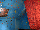 Боулдеринговый зал, оснащён толстыми матами. Cлабое и большое нависание, потолки, вертикали. Зал небольшой.