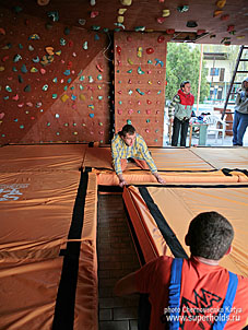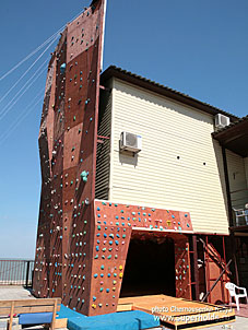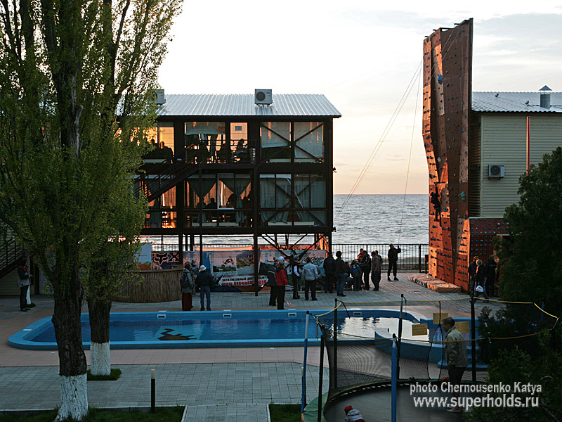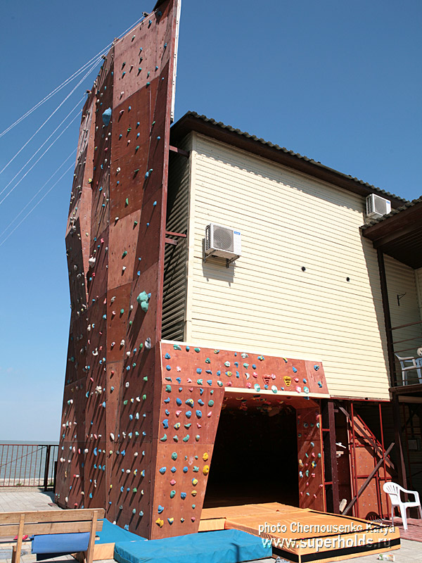 На территории отеля уже был высокий скалодром - 11 м, но в этом году добавился еще большой боулдринговый зал: различные нависания, большой потолок, отличные маты, много зацепов, но это еще не все! Скалодром находится на открытом воздухе на берегу Азовского моря. Надоедает лазать - виндсерфинг или кайтсерфинг к вашим услугам.