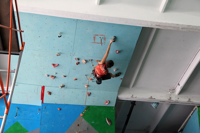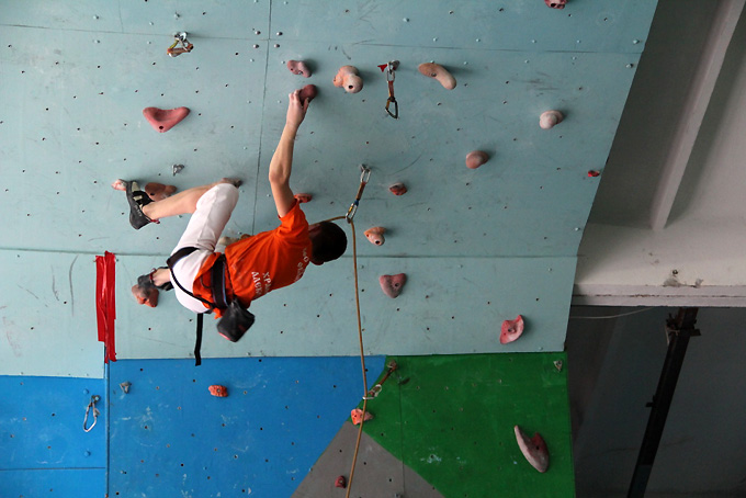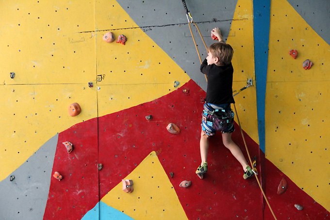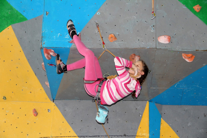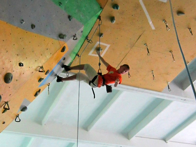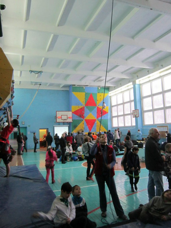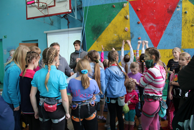 Наш скалодром расположен в обычном спортзале, высотой всего лишь 6 метров, но зато в результате практически непрекращающейся работы по усовершенствованию, его рельеф приобрёл самые разнообразные формы. Накануне все зацепки были сняты, и постановщик Олег Черешнев смог дать волю своей фантазии и накрутил замечательные трассы трудности. А чтобы дети могли полазить как можно больше, не скучали и проявили все свои способности, дополнительно были проведены соревнования и в скорости.