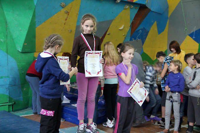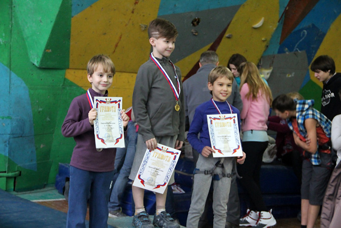 Напомню, что все вышесказанное о тонкостях техники, о силе и упорстве относится к ребятам и девочкам, которым все-то 11 -13 лет. А ведь на тех же трассах соревновались и совсем-совсем маленькие скалолазы: 9 – 10 и 7-8 лет! И финалы у них были также с нижней страховкой. Рост у них пока маленький, а характер уже взрослый! Вот имена победителей: Тиханович Софья (2003г.р.), Бекетова Дарья (2005г.р.), Тараканов Кирилл(2004г.р.), Архипов Вячеслав (2005г.р.).